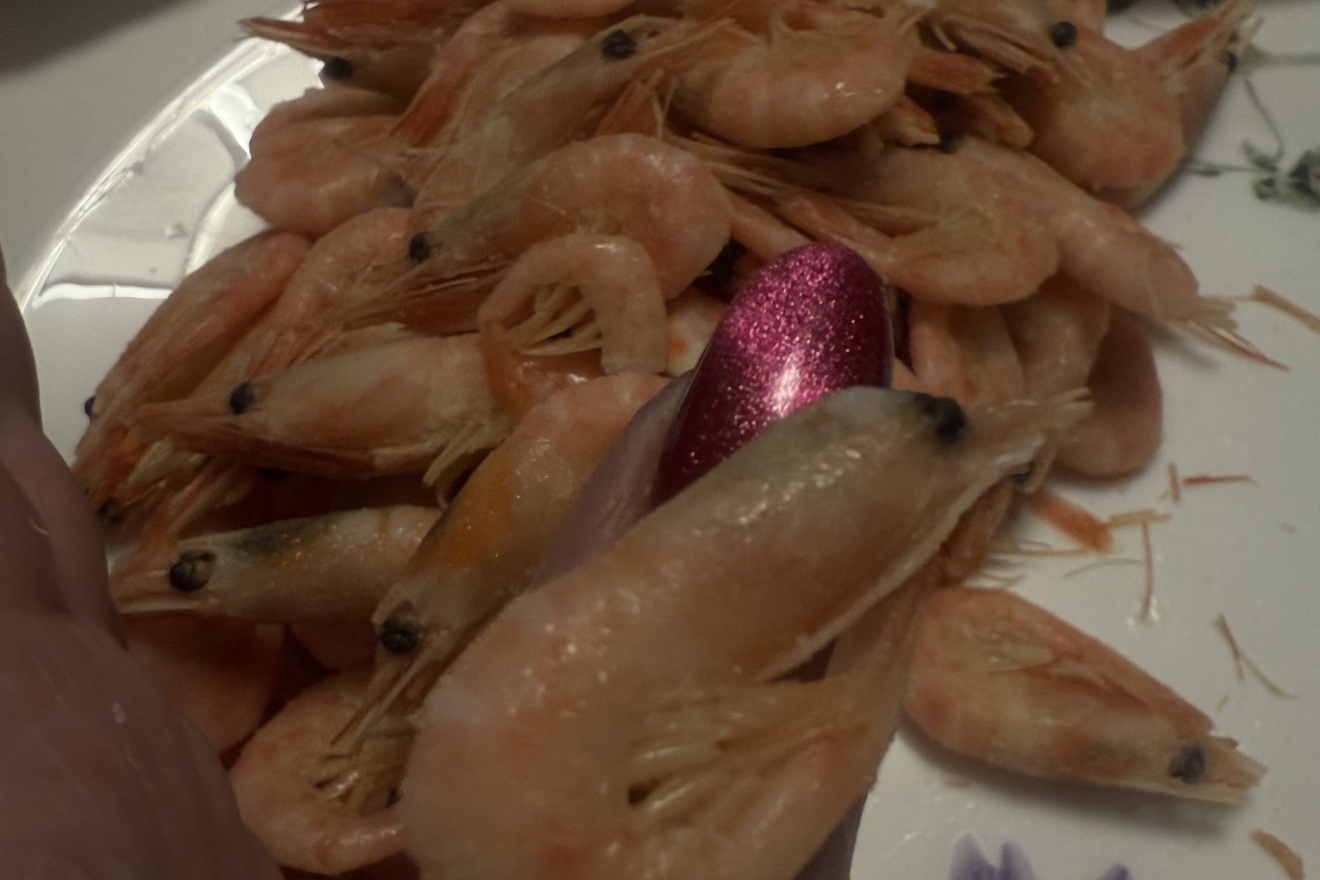 Мурманские северные креветки сварены и заморожены на судне. Сухая заморозка т.е. без льда, мелкая креветка , размер 2-4 см, в коробке 1250-1400 шт.