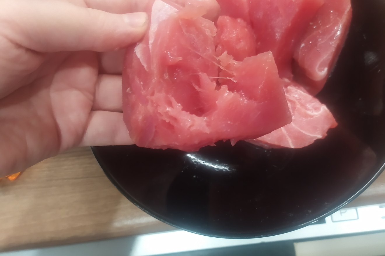 Разморозка. Перед приготовлением тунец нужно разморозить. Рекомендуемый способ - через холодильник от +4С на 18-24 часов. Для более быстрого способа поместите его в упаковке в ёмкость с холодной водой на 1-2 часа.