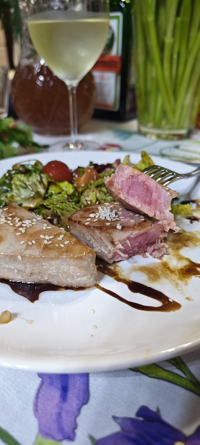 В сыром виде для тартара, сашими, выберите кусочки без жил или срежьте их. Истинное удовольствие, тонкий кусочек обмакнуть в соевый соус и съесть, ощущается весь вкус тунца и его нежность.
