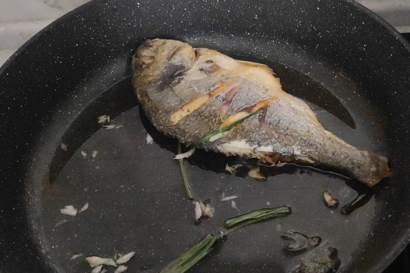 Разморозить, почистить и разделать рыбу, далее посыпать солью, перцем по вкусу, запекать в духовке в течении 20 минут.