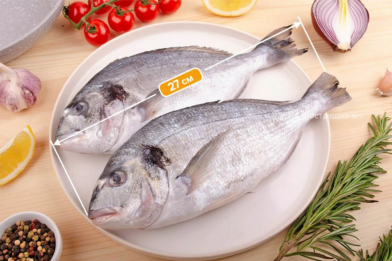 26-28 см длина рыбки, вес 300-400 г, в коробке 13-15 штук