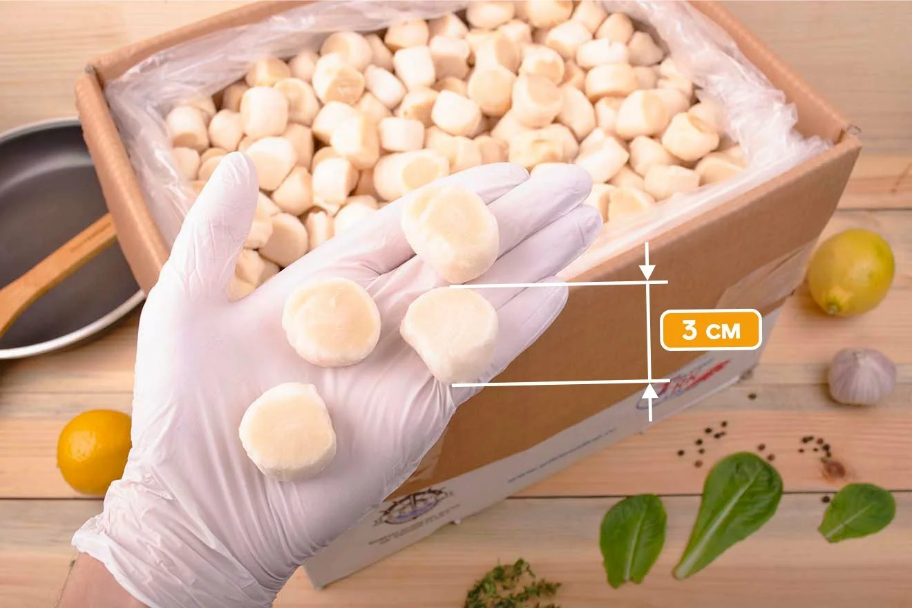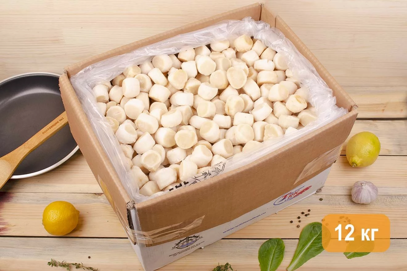 Гребешок морской дикий, филе L 60+ шт в килограмме, коробка 12 кг (Северно-Курильская зона)