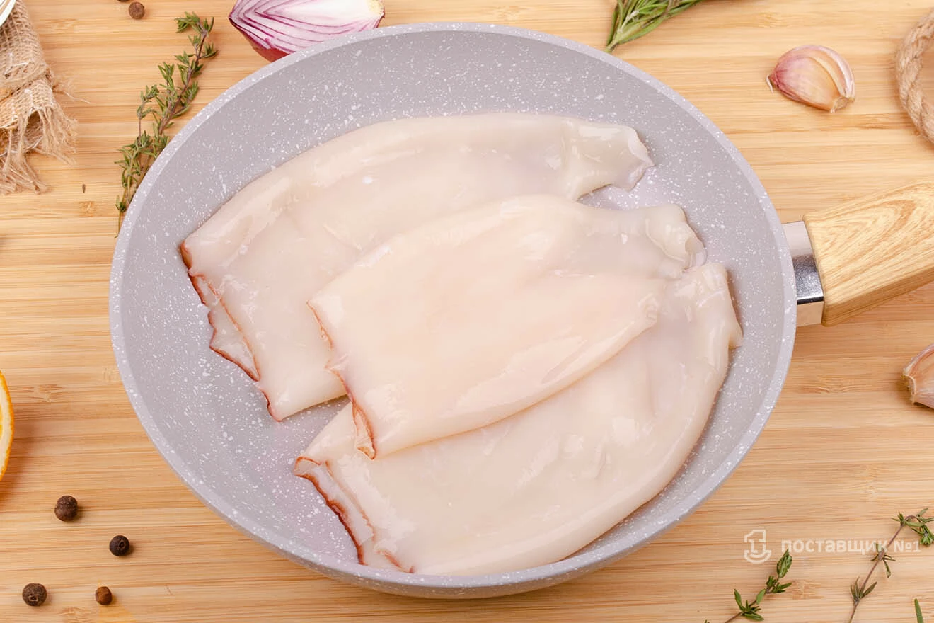 Филе кальмара очищено - отсутствует кожа, внутренности и центральная трубка. Белоснежное мягкое филе отличается приятным и нежным вкусом.