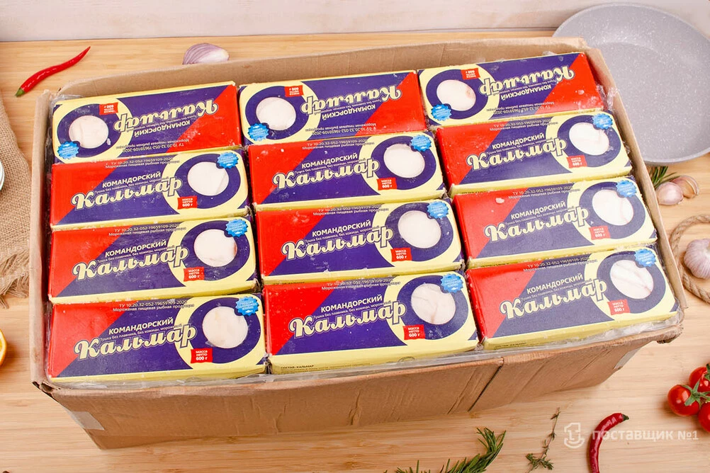Кальмар командорский филе с/м блок 0,6 кг, коробка 12 шт (выработано в море, Океанрыбфлот)
