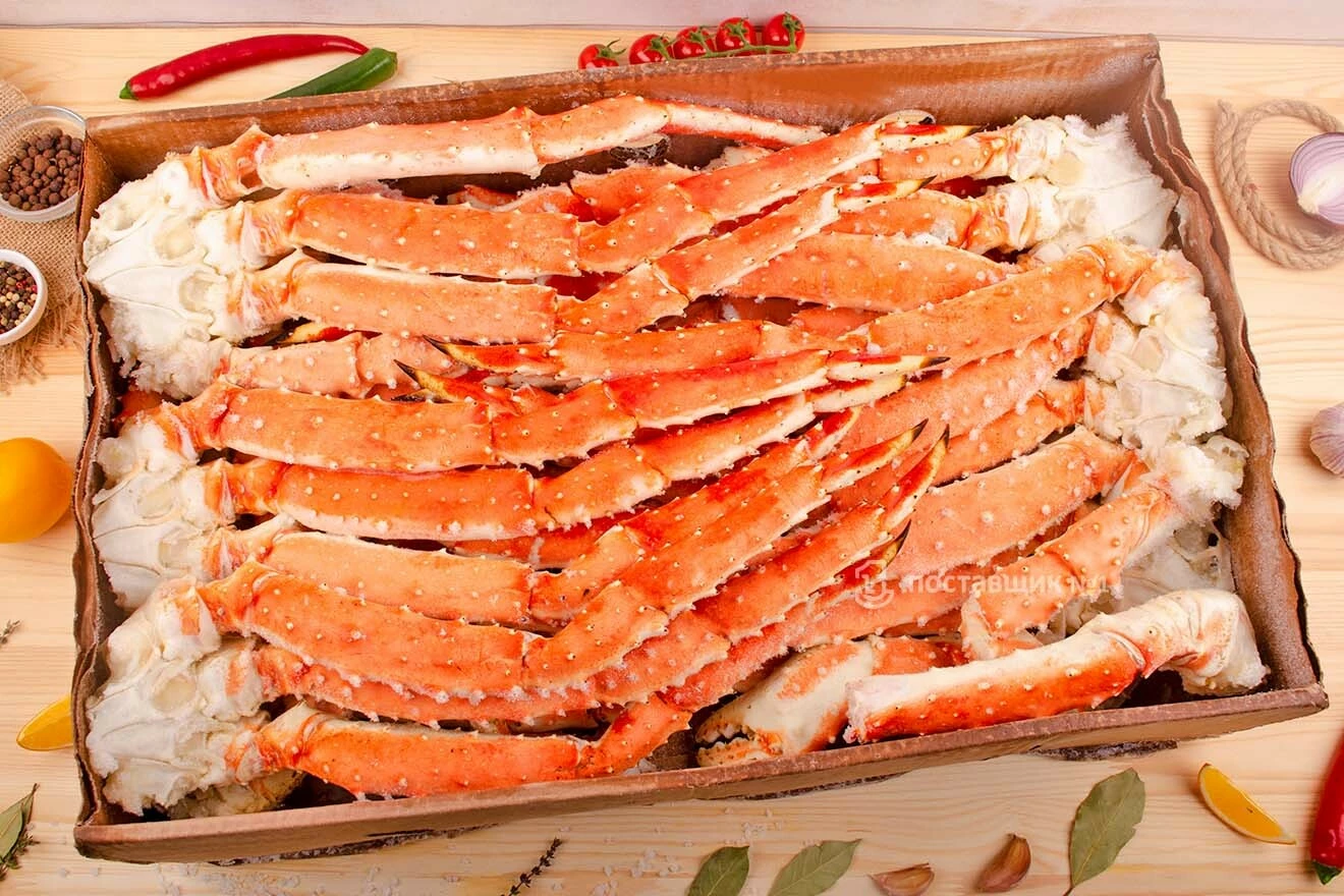 Краб выловлен в районе Баренцево моря и заморожен воздушным способом там же, глазурь не более 15%. Просто залить кипятком на 5-7 минут и блюдо готово. Нежное мясо краба, получаешь истинное удовольствие, когда разделываешь его руками.
