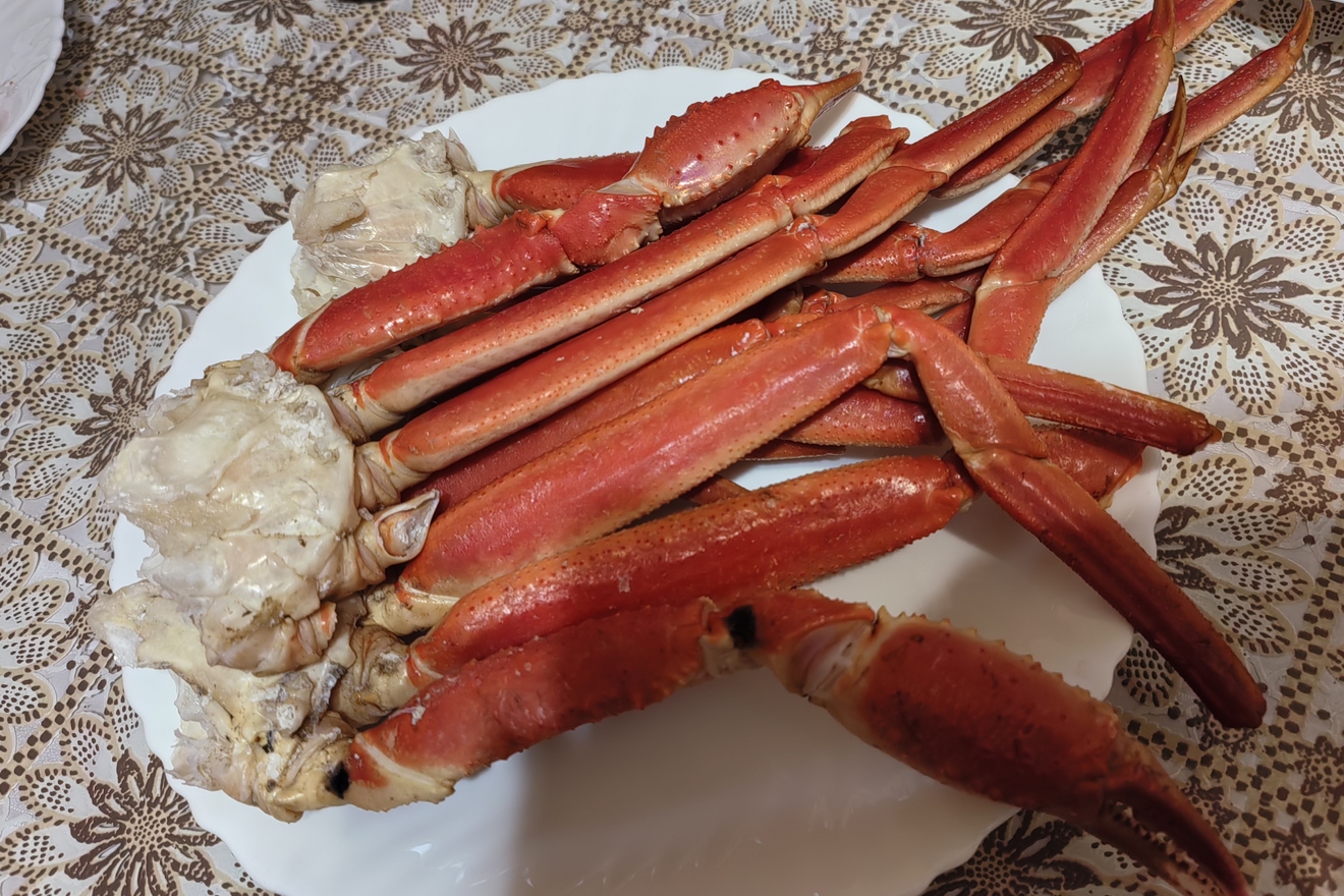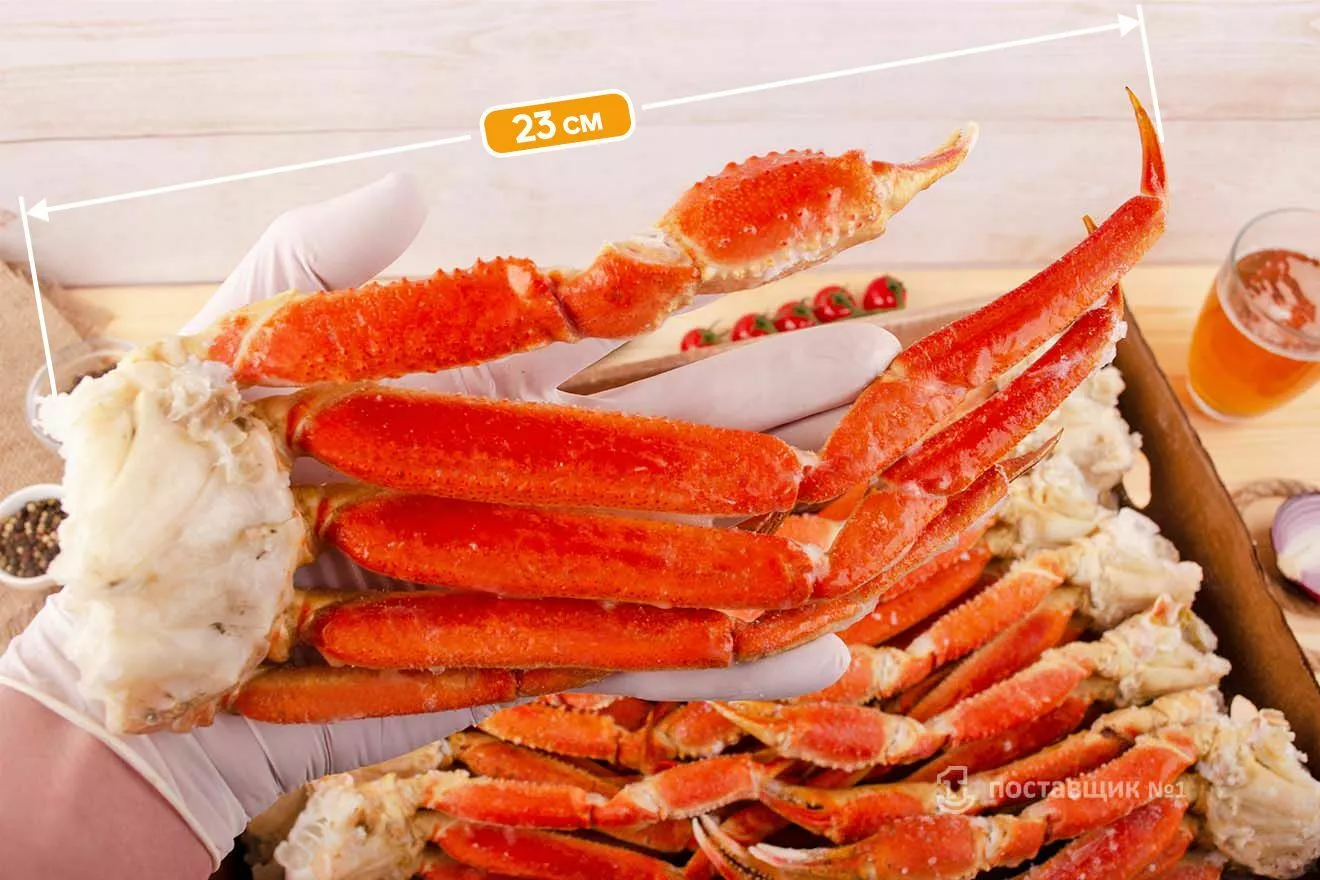 Краб выловлен в районе Баренцево моря, заморожен воздушным способом, глазурь не более 15%. Просто залить кипятком на 5-7 минут и блюдо готово. Нежное мясо краба, получаешь истинное удовольствие, когда разделываешь его руками.