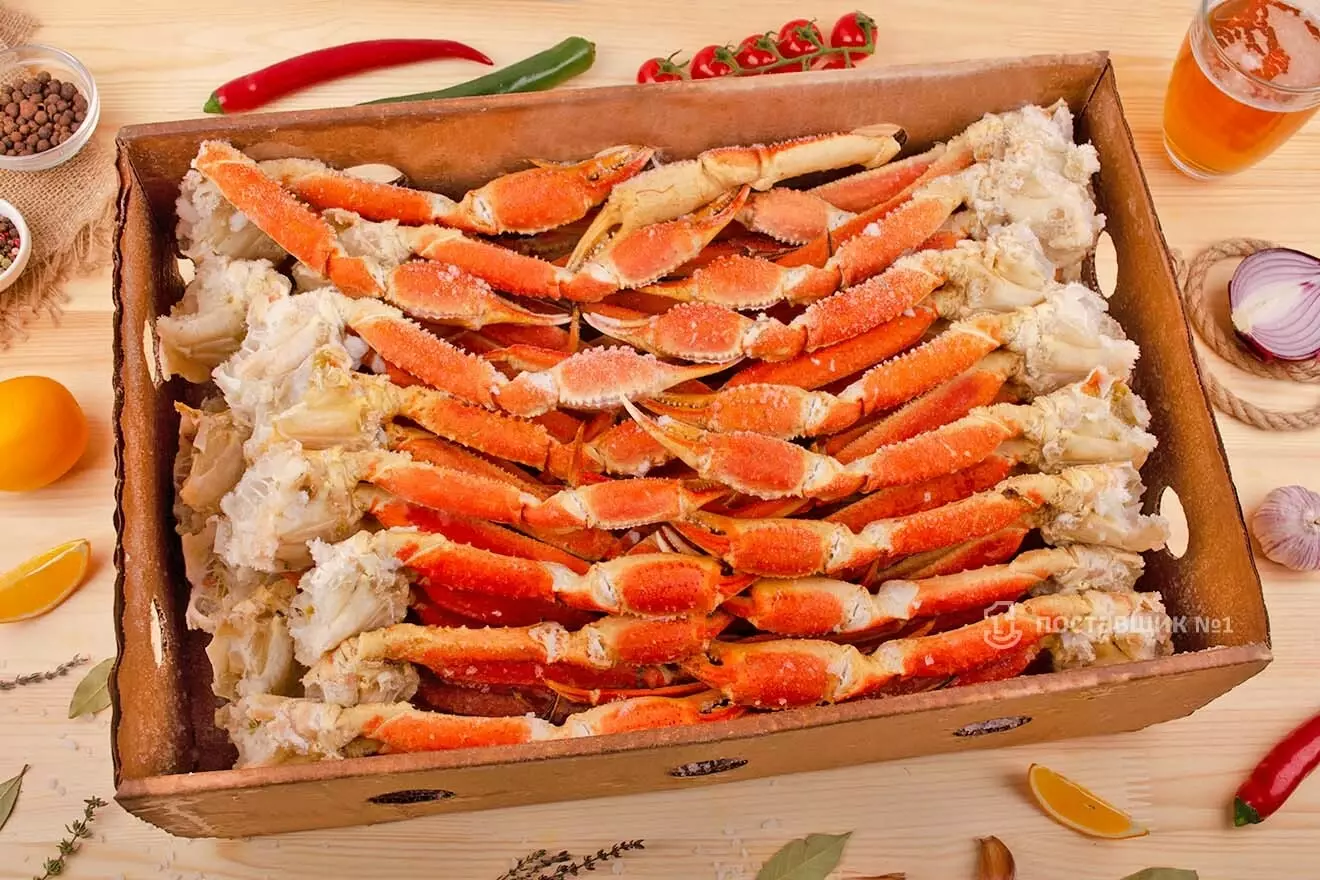 Краб выловлен в районе Баренцево моря, заморожен воздушным способом, глазурь не более 15%. Просто залить кипятком на 5-7 минут и блюдо готово. Нежное мясо краба, получаешь истинное удовольствие, когда разделываешь его руками.