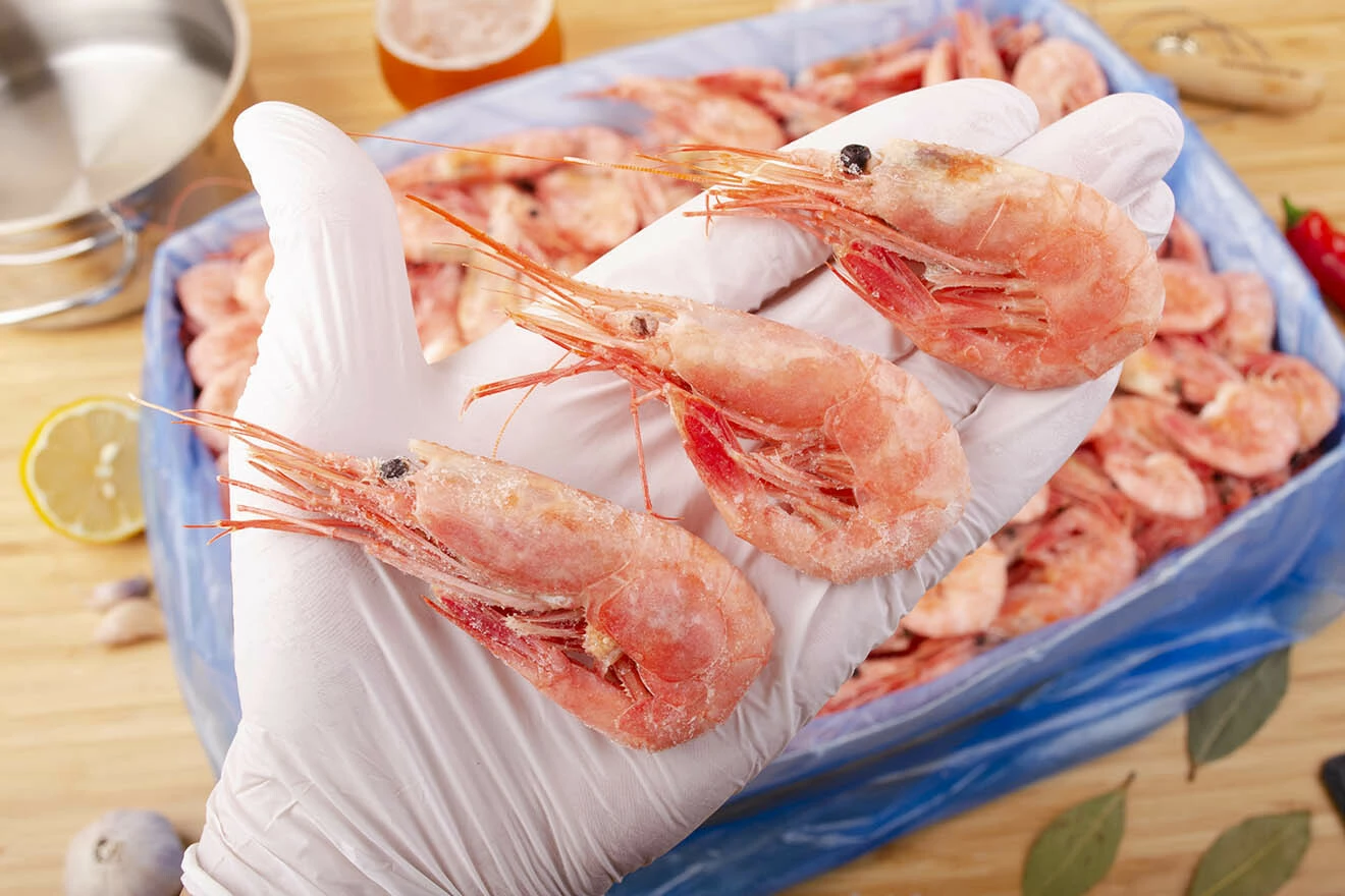 Креветки в холодном виде. Размораживаем креветки в холодильнике около 24 часов и затем сразу хрумкаем! Они сохраняют свой морской вкус, остаются структурными и не теряют полезные свойства.