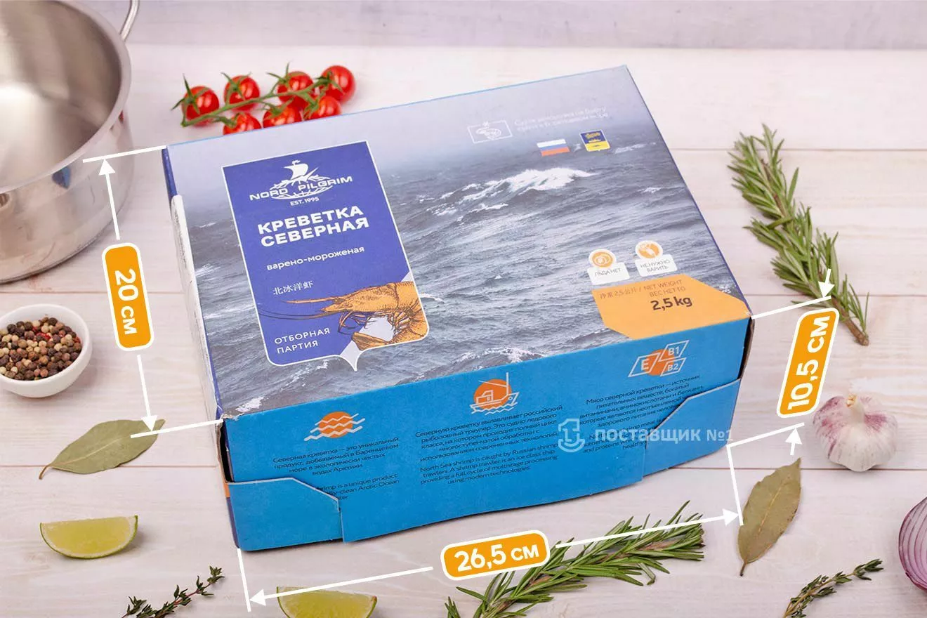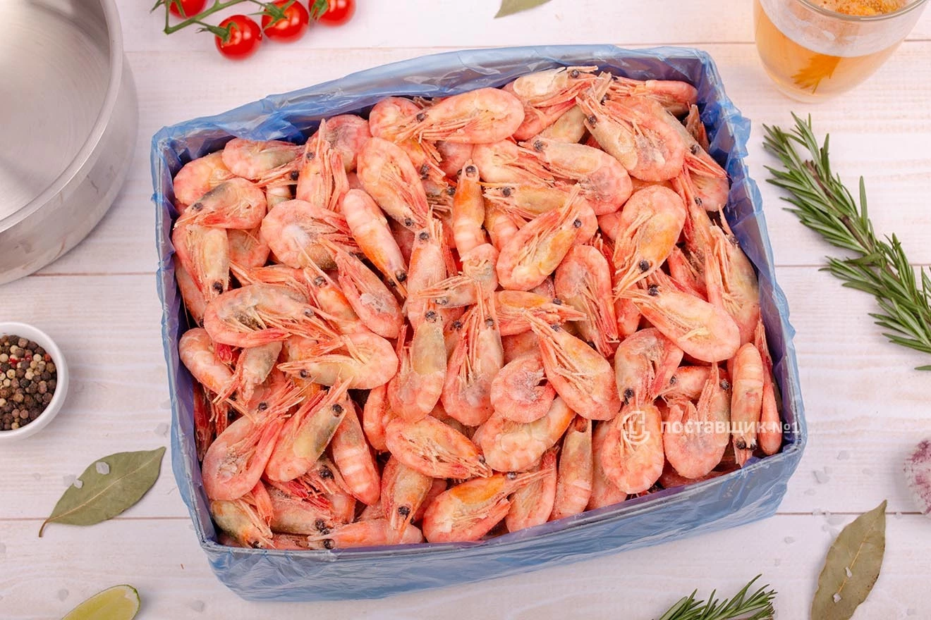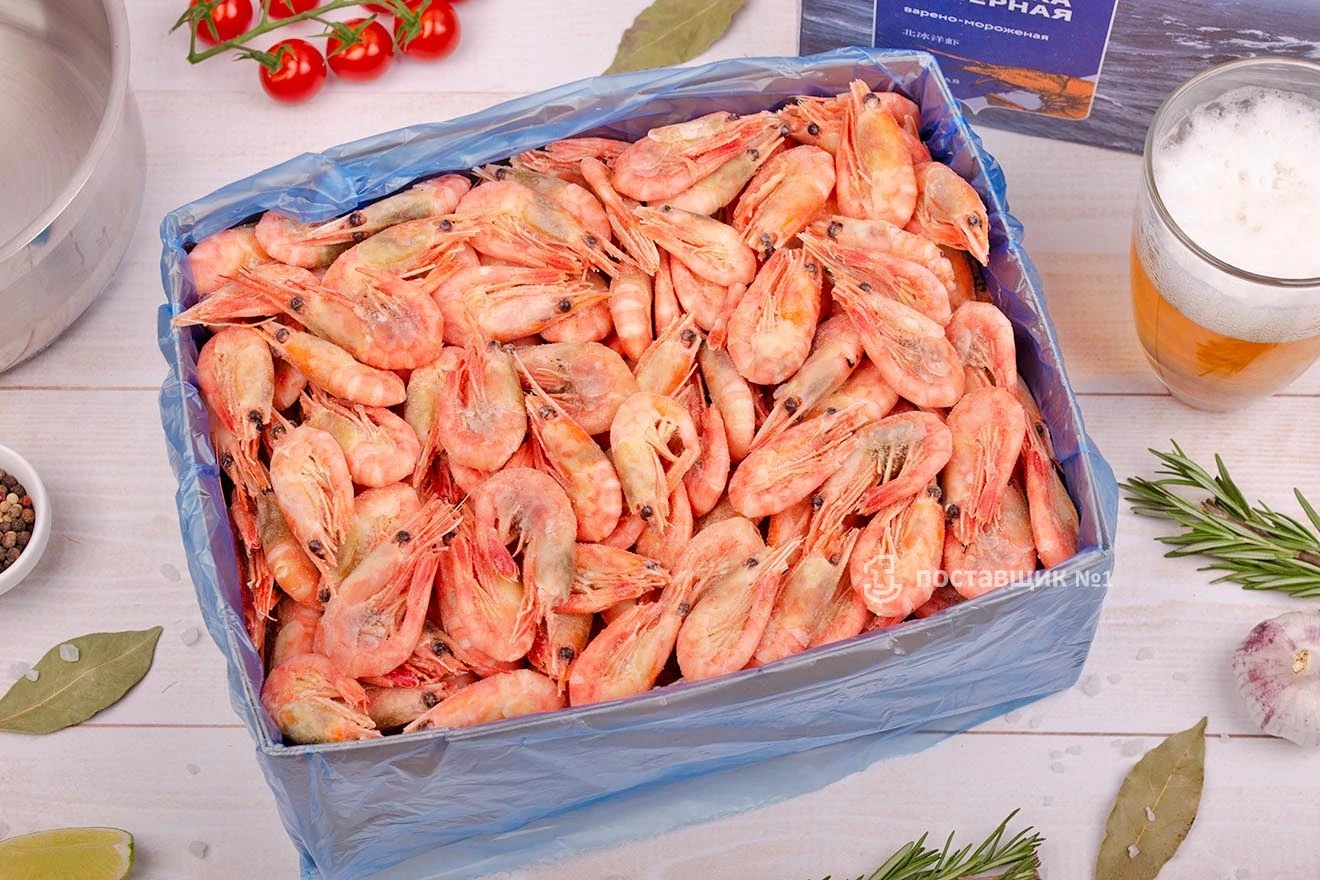 Северные креветки приготовлены и заморожены непосредственно на борту судна в холодных водах Баренцева моря. Не требуют варки — достаточно разморозить.