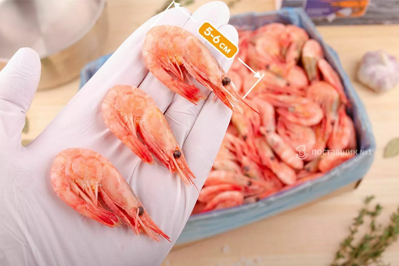от 90 до 120 штук в 1 кг, 4-6 см длина креветки, вес 6-8 гр