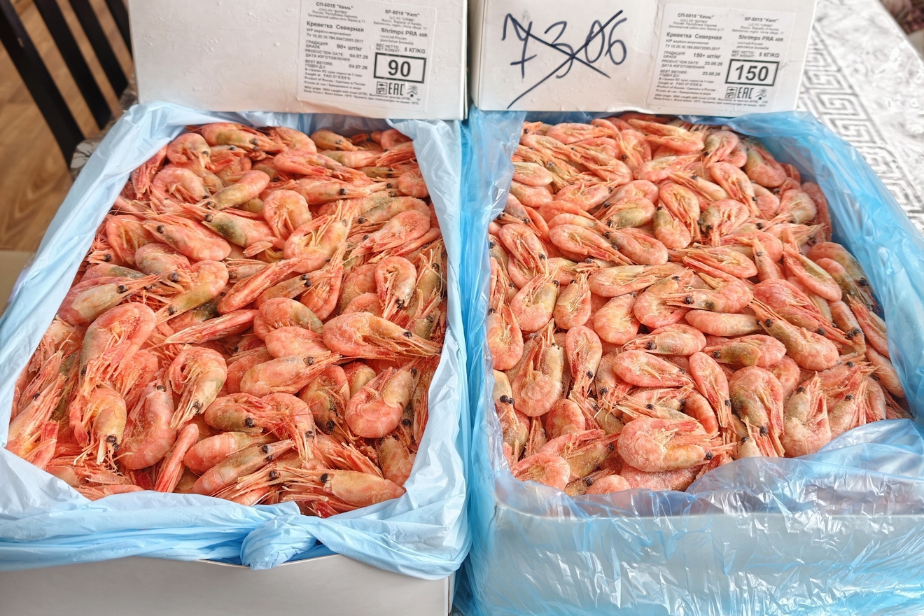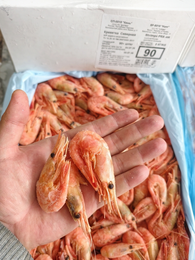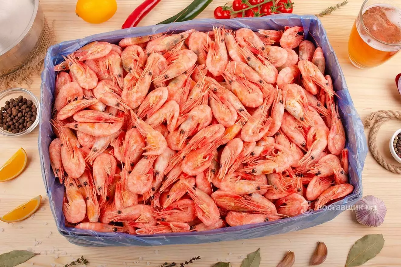 Креветки северные в/м, 90+ шт в кг, коробка 5 кг (Баренцево море, КРФ)