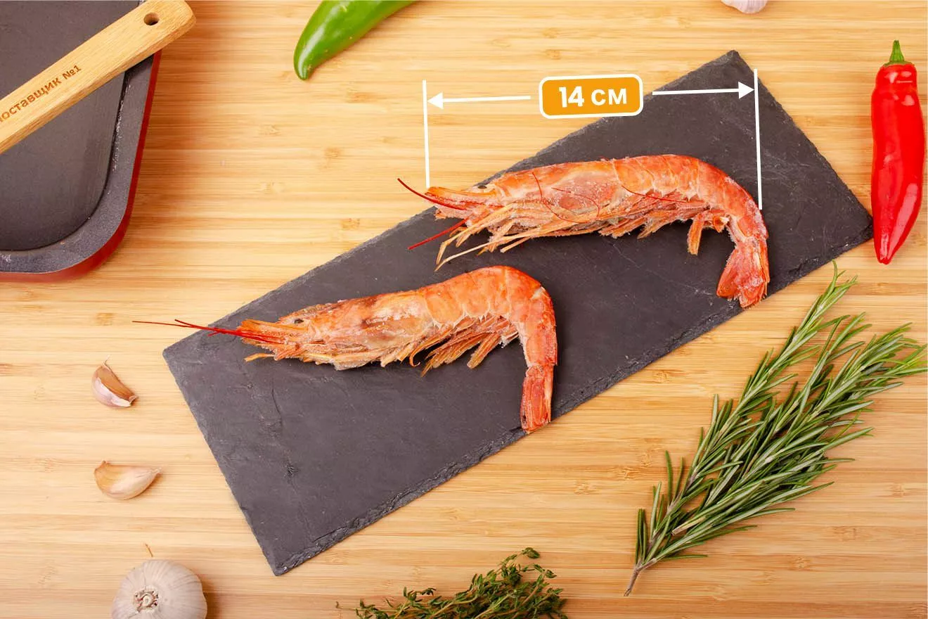 Рекомендации по приготовлению. Креветка достаточно крупная 16-17 см, можно подавать как самостоятельное блюдо. Подходят для жарки, запекания, варки, используется для приготовления салатов, морских коктейлей, пасты, блюд с рисом (паэлья, ризотто) и для шашлычков из морепродуктов. Эти креветки имеют очень приятный вкус, нежный аромат и плотную консистенцию.