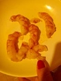 Во фритюре. Готовятся 40-60 секунд. Очистить креветки, оставив маленький хвостик на конце, обмакнуть в кляре и поместить в кипящее масло. Вкусная и красивая закуска готова.