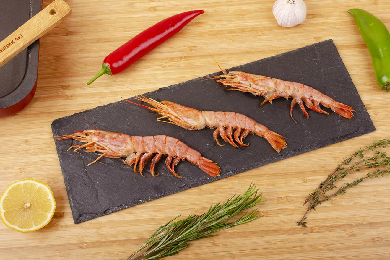 Рекомендации по приготовлению. Креветка достаточно крупная 16-17 см, можно подавать как самостоятельное блюдо. Подходят для жарки, запекания, варки, используется для приготовления салатов, морских коктейлей, пасты, блюд с рисом (паэлья, ризотто) и для шашлычков из морепродуктов. Эти креветки имеют очень приятный вкус, нежный аромат и плотную консистенцию.