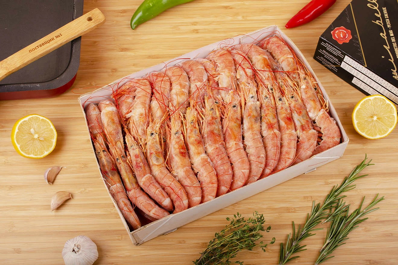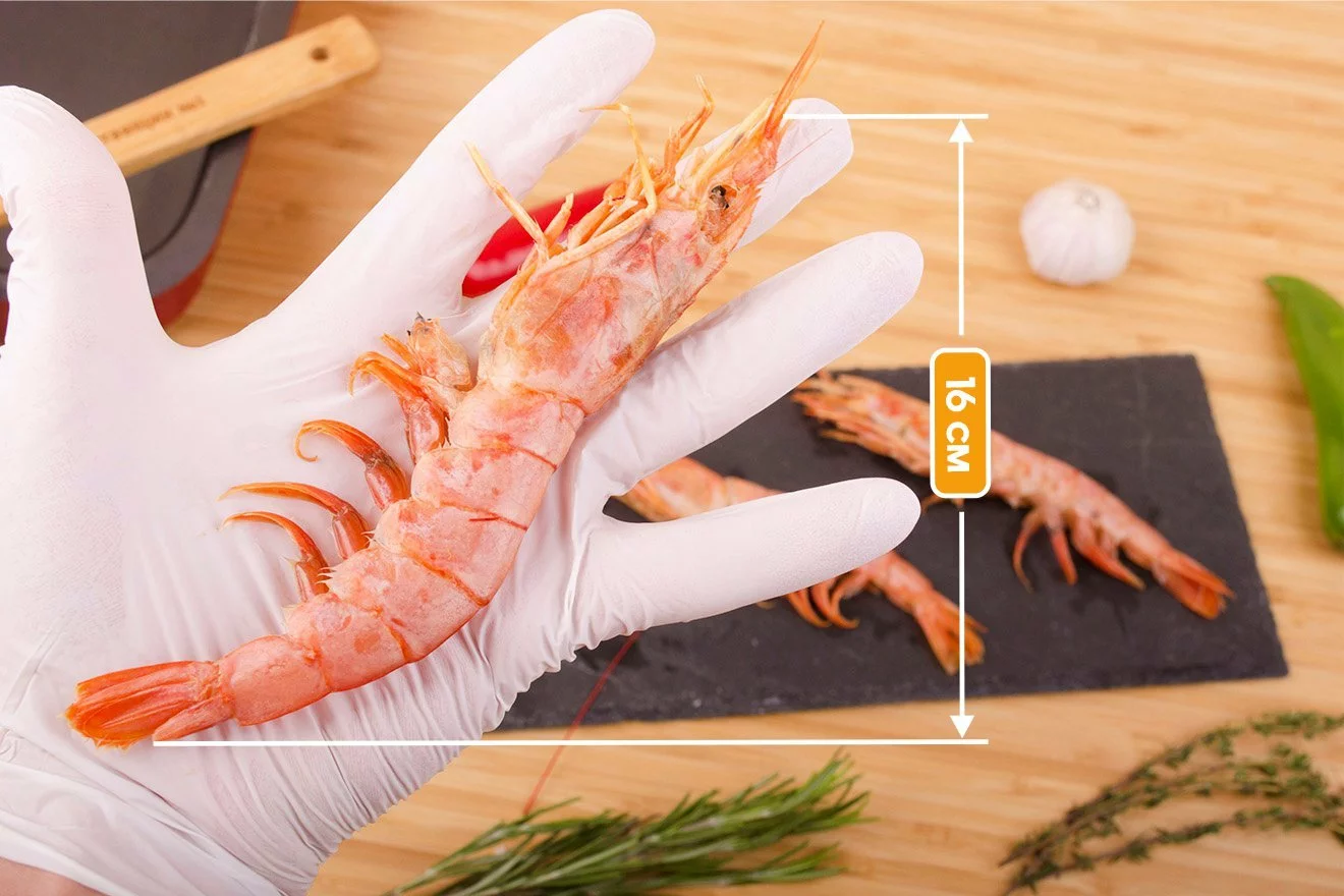 Рекомендации по приготовлению. Креветка достаточно крупная 16-17 см, можно подавать как самостоятельное блюдо. Подходят для жарки, запекания, варки, используется для приготовления салатов, морских коктейлей, пасты, блюд с рисом (паэлья, ризотто) и для шашлычков из морепродуктов. Эти креветки имеют очень приятный вкус, нежный аромат и плотную консистенцию.