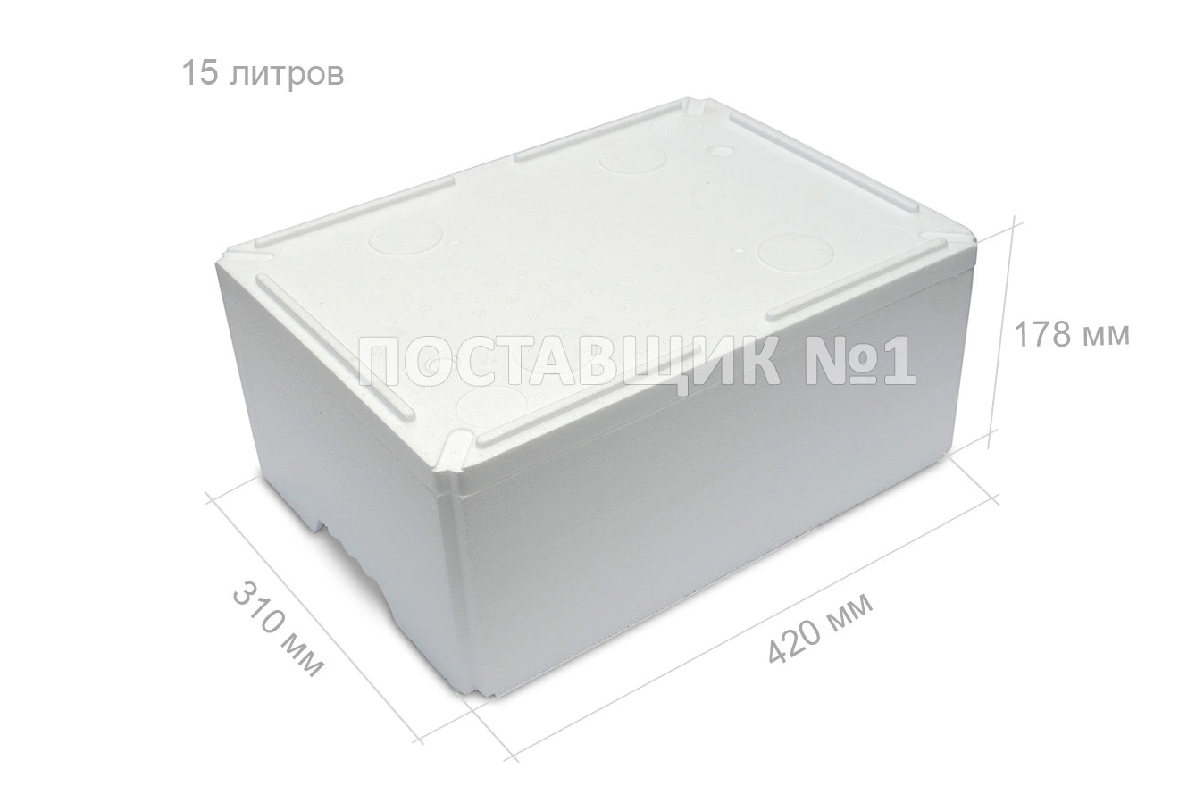 внешний 42х31х18 см, внутренний 38,5х27,5х14,5 см, толщина стенки 2 см, объем: 15 литров, вместительность 5-7 кг, весит 200 гр.