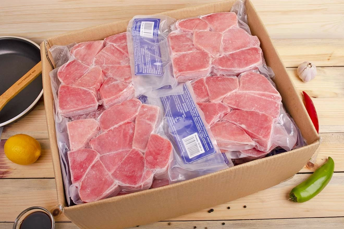 Тунец филе с/м стейки 50-100 гр коробка 10 кг (20 в/у по 500 гр, для стейков, тартара, Вьетнам)